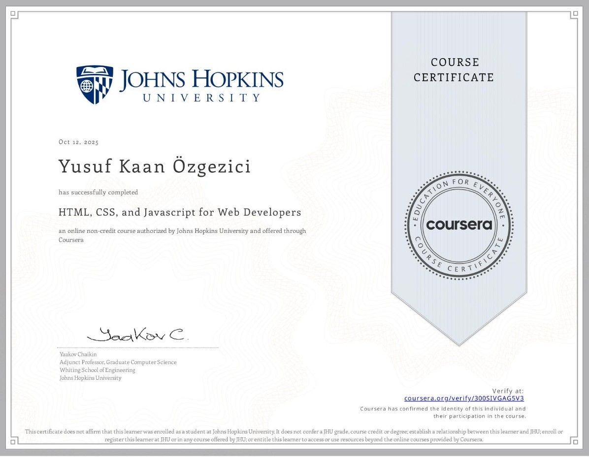 Yusuf Kaan Özgezici Johns Hopkins University gibi üniversitelerin sertifika programlarına katılmış ve kendi bıranşın da bir çok sertifikayı almaya hak kazanmıştır. 2017 yılında TEMA WEB TASARIM BİLİŞİM TENOLOJİLERİ firmasının kurucusudur. Bir çok büyük marka ve şirketin bilgi işlem uzmanlıklarını freelancer olarak yürütmektedir. Eğitim ve öğrenim hayatına ara vermeksizin Üniversitelerin Sertifika Programlarından eğitim almaya devam etmektedir.